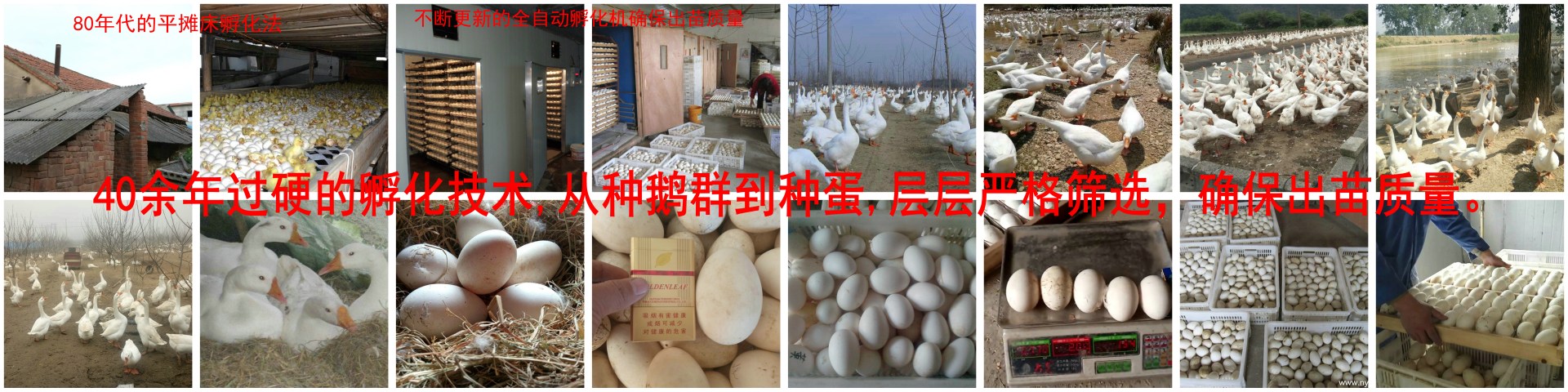 目前合作社主要孵化皖西白鹅苗、三花鹅苗、泰州鹅苗、霍尔多巴吉鹅苗,黑金定2号鸭苗,柴鸡、土鸡等不同品种的珍禽苗(一次可出炕20000-30000只),鹅苗以:皖西鹅、大三花鹅为主(鹅苗重110g左右,成活率可达99.5%,70日龄可达8斤以上,出肉率高。产蛋重量达到160g,年产蛋可达60-120枚,鹅毛可达350g以上)。鸭品种以黑金定(产绿皮鸭蛋)、白番鸭(肉用型)为主,鸡品种以柴鸡为主,另外为广大爱好稀有品种的客户提供代孵化项目(有很大一部分客户手里有种蛋可帮忙代孵化,如:斗鸡、火鸡、珍珠鸡、孔雀等)。合作社本着诚信 严谨 创新 务实 共赢,愿与全国各地的鹅业养殖户一道逐步创造“优良的品种,为客户节约成本,提高盈利,我们希望每一只禽苗成为您致富的钥匙,这就是我们永不止步的服务追求”!